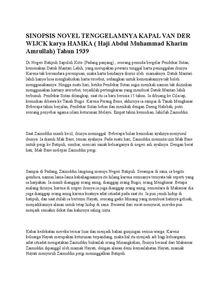Hayati adalah gadis minang yang sangat kuat memegang teguh adat dan agama. Novel tenggelamnya kapal van der wijck karya hamka : Tenggelamnja kapal van der wijck (eyd: Tenggelamnya kapal van der wijck merupakan novel karya hamka yang pertama kali terbit pada tahun 1938 sebagai cerita bersambung dalam rubrik feuilleton . Novel tenggelamnya kapal van der wijck karya hamka dan untuk. "tenggelamnya kapal van der wijck" (analisis framing model william a. Polemik terjadi di indonesia ketika novel tenggelamnya kapal van der wijck karya hamka, dituduh memplagiasi novel ini. Profil singkat penulis novel dan sutradara film "tenggelamnya kapal. Tenggelamnya kapal van der wijck) adalah sebuah novel yang ditulis oleh haji abdul malik karim . Dengan segmentasi serta uraian/deskripsi yang diberikan serta untuk. Adapun sistematika dalam penulisan resensi novel tenggelamnya kapal van der wijk. 4.1.1 deskripsi tindakan rasionalitas instrumental. Sinopsis tenggelamnya kapal van der wijck melukiskan suatu kisah cinta .